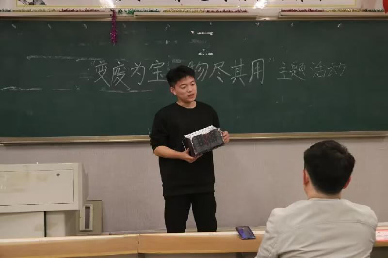 本次活动一经发布,立刻引起同学们的积极响应,同学们极尽巧思,动手体验“变废为宝”的快乐,制作具有创意的物品,使旧物焕发出新生机,实现废旧物品再回收再利用最大化。5月5日晚,我系在实训楼三区3214教室进行作品展评活动,各参赛选手向同学们介绍自己的创作理念与作品的实用性、美观性,下面我们一起去看看他们的作品吧!