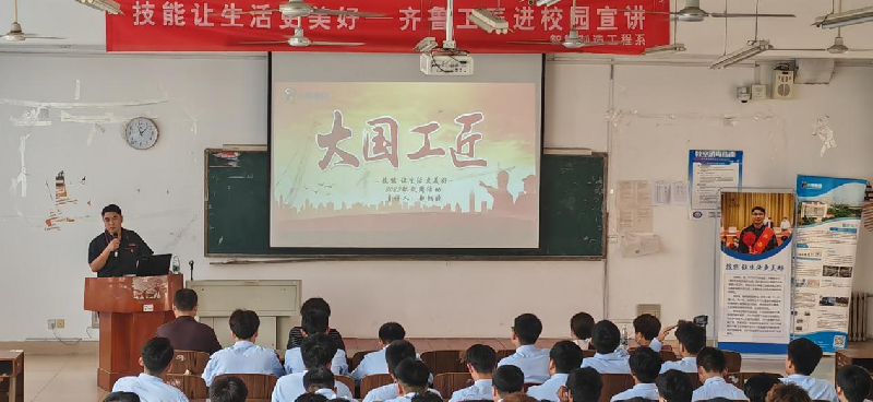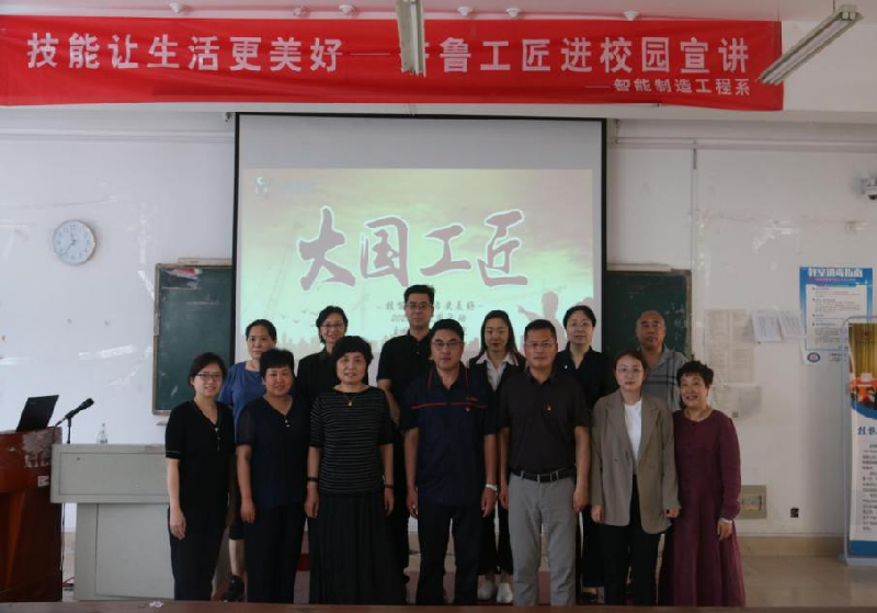 5月18日,智能制造工程系组织开展“齐鲁工匠进校园”宣讲活动,邀请山东省劳动模范、济南市五一劳动奖章获得者、齐鲁工匠——山东小鸭集团精工机械有限公司车轮模具装配车间主任赵炳晓师傅到校作工匠精神主题讲座。