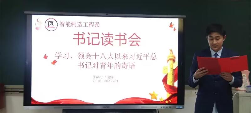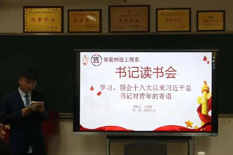 5月21日,智能制造工程系在综合楼201会议室开展“学习、领会党的十八大以来习近平总书记对青年的殷切寄语”主题书记读书会活动。系辅导员辛德平、2022级各班团支书和2023年新发展团员参加活动。