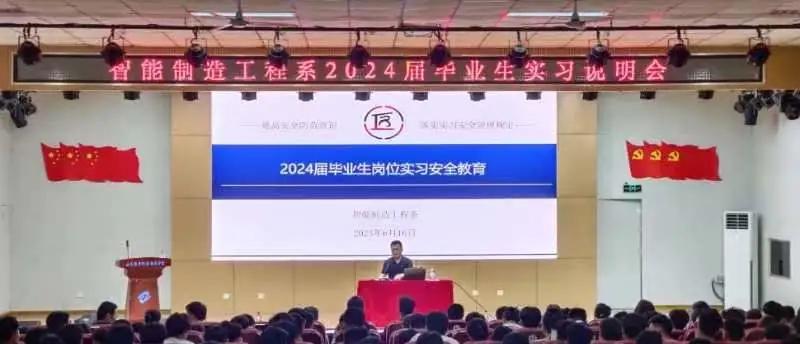 6月16日,智能制造工程系召开2024届毕业生实习说明会暨实习安全培训会,安排部署岗位实习工作事宜,开展安全教育。系部干部、毕业班辅导员、实习指导教师及10个专业的507名毕业生参加会议。