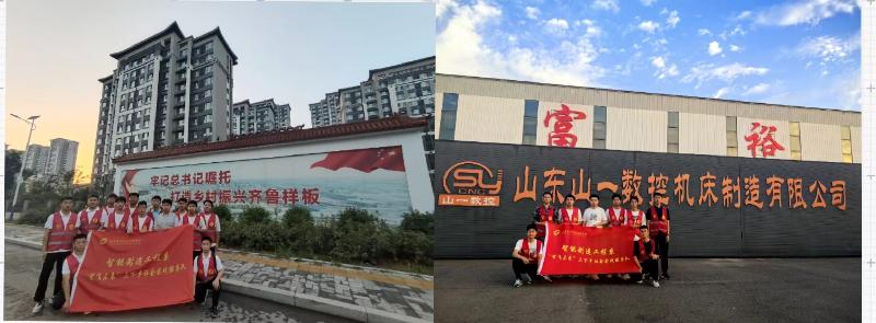 实践队走进数控产业园,感受新时代智能制造实体行业前沿技术与实操环境;走进乡村社区,感受新时代齐鲁样板示范村的淳朴民风、社区环境、网格化治理模式。与当地村民沟通得知,总书记视察三涧溪村五年来,三涧溪的发展日新月异,新的拆迁安置房拔地而起,村民们的居住条件、乡村治理模式更上一层楼,三涧溪村的发展与振兴成果看得见、摸得着、感受得到,谈到今天的美好生活,村民们都开心的合不拢嘴。