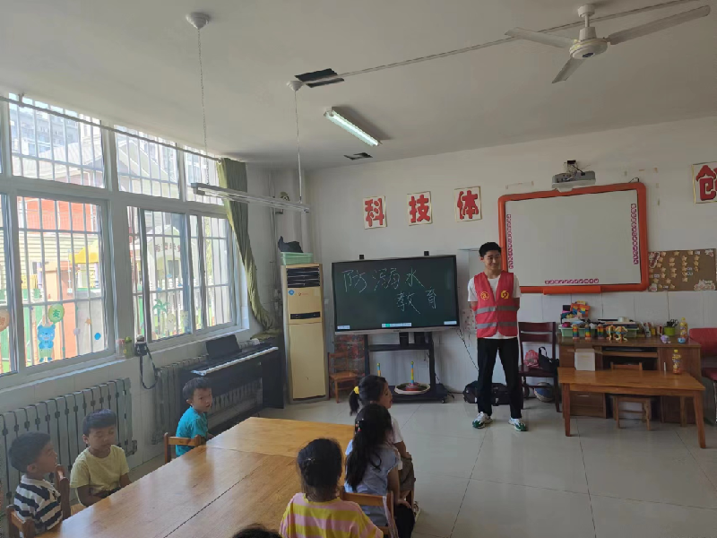 万晓峰同学结合暑期高发溺水事故的现实情况,为小朋友们科普暑期防溺水知识,叮嘱小朋友们不要前往危险水域,要在父母老师陪同下前往正规游泳馆学习游泳知识。