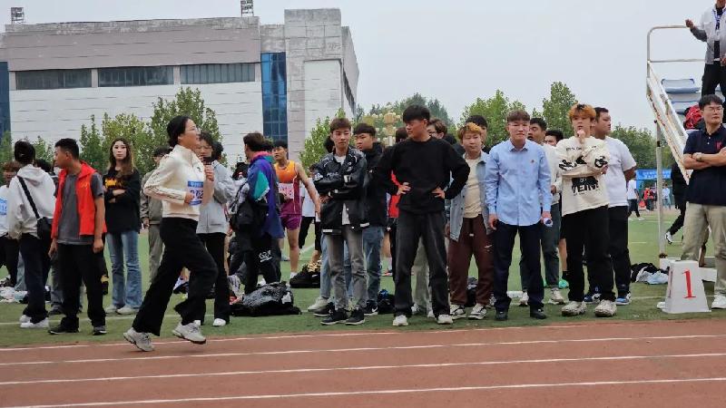 在此次女子1500米的中长跑比赛中,电院的运动健儿赵光宇拼搏意志,挑战极限,坚定、执着、耐力与希望,在延伸的白色跑道上凝聚;力量、信念、拼搏与奋斗,在遥远的终点线上渐渐明亮。无限追求,奋力追赶。
