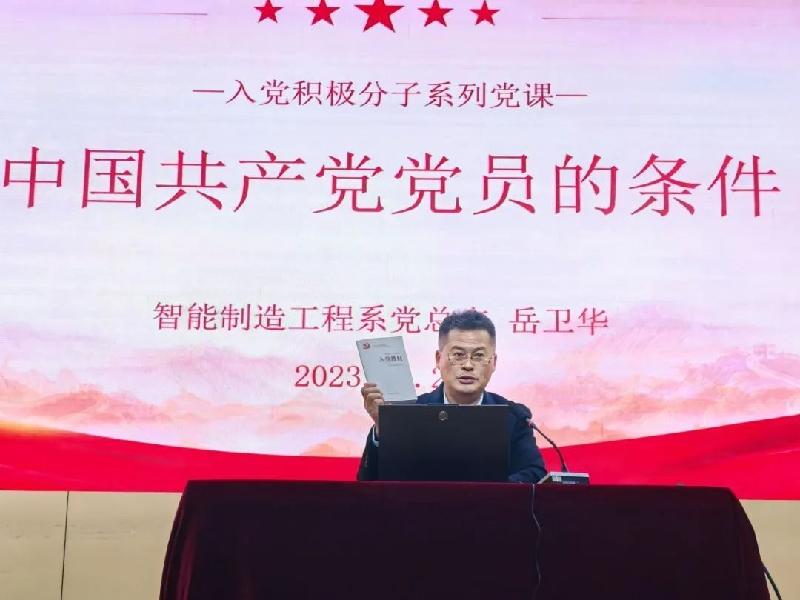 为保证党员发展质量,做好入党积极分子的培养教育,根据学校2023年度入党积极分子培训工作的安排,智能制造工程系学生党支部于11月份组织本年度学生入党积极分子培训班。本期培训班采用理论教学与实践教学相结合,集中培训与自主学习相结合的方式进行,主要围绕习近平新时代中国特色社会主义思想、中国共产党的发展历程、中国共产党党员条件以及如何做一名合格的共产党员等专题开展。