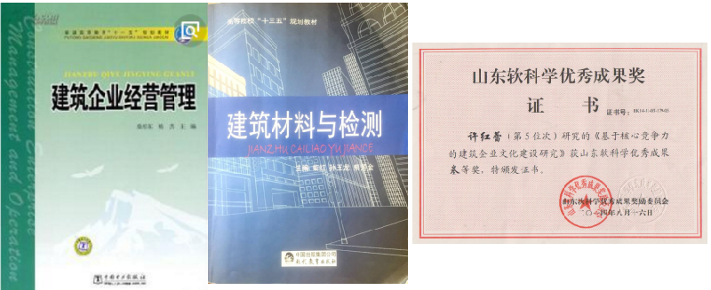 许红蕾,助教,山东建筑大学管理科学与工程专业硕士学位。副主编高等院校“十三五”规划教材《建筑材料与检测》,参编教材《建筑企业经营管理》;2017年参与省级课题《PBL的工程造价专业核心课程群综合实践教学模式的研究及应用》;2015年在《工程建设与设计》期刊上发表论文《绿色建筑商业地产项目成本管控研究》;2014年参与的课题《基于竞争力的建筑企业文化建设研究》获得山东软科学优秀成果奖。
