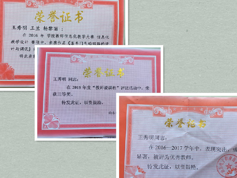 王秀明,毕业于济南大学,机械设计及理论硕士研究生学历。机电教研室专任教师,主要承担机械制造技术、液压与气压传动课程的教学,编写了《液压与气压传动》校本教材,发表了有关机械制造技术课程改革的多篇论文。2015、2016年参加信息化教学比赛、说课比赛获奖,2017年优秀教师。参与省级精品课程《电气控制与PLC》精品课程项目;参与山东省教育厅《建立教产对接、校企 “双主体”现代学徒制人才培养模式的研究与实践》课题研究。