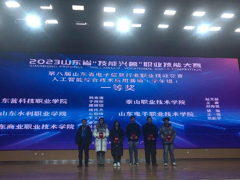 12月1-2日,2023山东省“技能兴鲁”职业技能大赛—第八届山东省电子信息行业人工智能综合技术应用赛项在东营科技职业学院举办。学校智能制造工程系选派2支队伍参加学生组比赛,分别获得一等奖和二等奖的好成绩。
