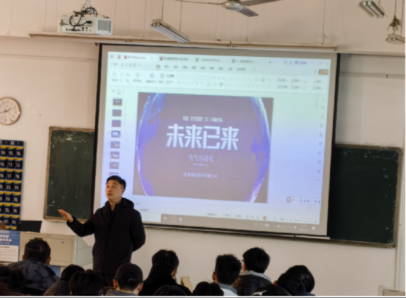 王总结合济南易恒技术有限公司的发展现状,从电气自动化技术在现代工业中的应用、电气自动化技术在易恒公司产品的应用、电气自动化技术专业人员的职责定位、电气自动化技术专业学生需要了解的相关知识、该专业需具备的实操能力以及专业人员岗位职级设置六个方面详细讲述了学生实习和就业面向的岗位、在学校期间学习的课程和必备的技能、毕业后的岗位晋升路线等学生关心的问题。
