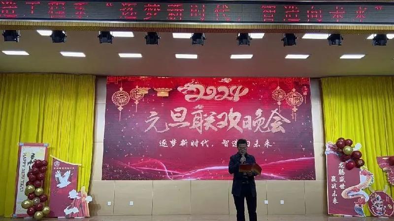 时逢风华正茂之际,勇毅笃行向未来。12月28日晚18时30分,智能制造工程系2024年“逐梦新时代 智造向未来”元旦联欢会在报告厅隆重举行。系党政负责人王红、岳卫华同全体辅导员、部分班主任以及全系学生同度良宵,联欢会还邀请了其他兄弟系部领导共享欢乐时光。