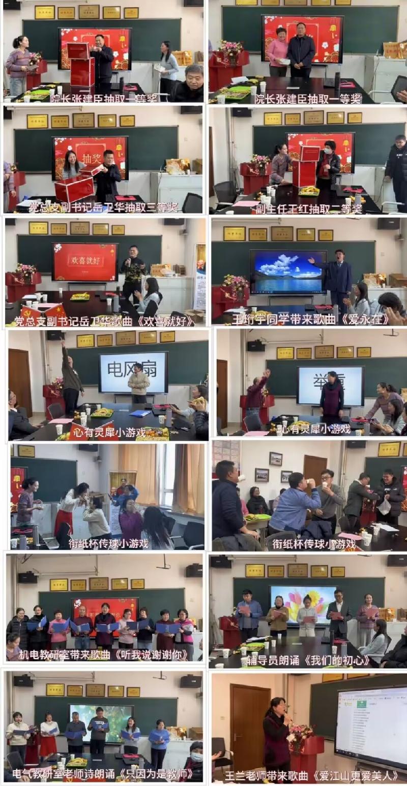 活动在回顾2023年系部精彩视频中拉开帷幕,系副主任王红新年致辞,回顾全系一年的重点工作,肯定了大家在教育教学尤其是技能大赛中取得的各项成绩,对新一年工作做出展望。各教研室及辅导员代表在新年致辞中总结了年度的工作开展情况,重温教师职责的初心使命,展望2024。迟会礼副书记在讲话中肯定了系部一年中取得的成绩,并献上自己的新年祝福。幸运抽奖环节中,张建臣院长在为大家抽出一等奖幸运观众,并向辛勤工作在一线的教职工们表示了亲切慰问和节日的祝福,活动现场洋溢着一股爱的暖流。