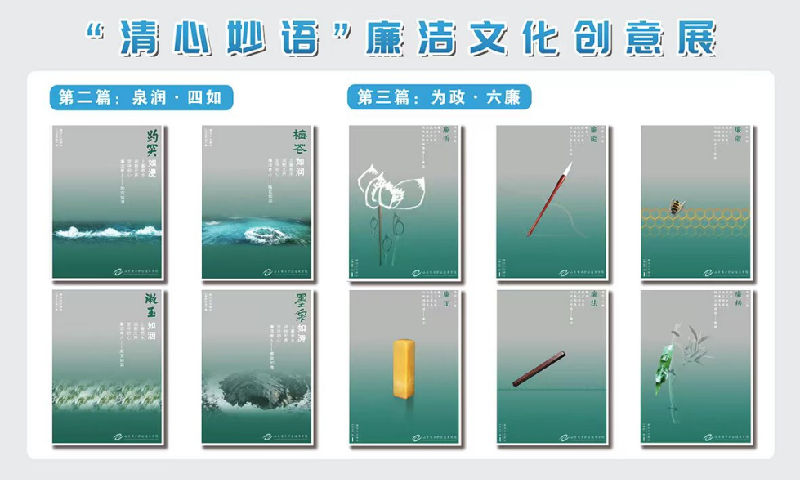 随后支部党员线上参观了学校“清心妙语”廉洁文化创意展。展览采用平面设计形式,作品紧紧围绕党员干部廉洁从政、教师廉洁从教、学生廉洁养成三个根本,将廉洁养成与立德树人相贯通,将廉洁文化与学校驻地泉水文化相融汇,将廉洁文化与优秀传统文化相结合,推出了《廉谱—红红脸 出出汗》等开篇之作,以及《泉润•四如》《为政•六廉》《廉洁养成•十大育人》三组23幅作品,充分展示了学院在廉洁文化建设方面的成果。