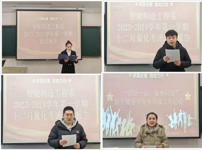 1月9日智能制造工程系举办2023年12月份班级及团支部量化考核总结表彰大会。学生工作处副处长王佩,系党、团总支负责人岳卫华、王晓天,全体辅导员、部分班主任及22、23级各班级学生代表参加大会。