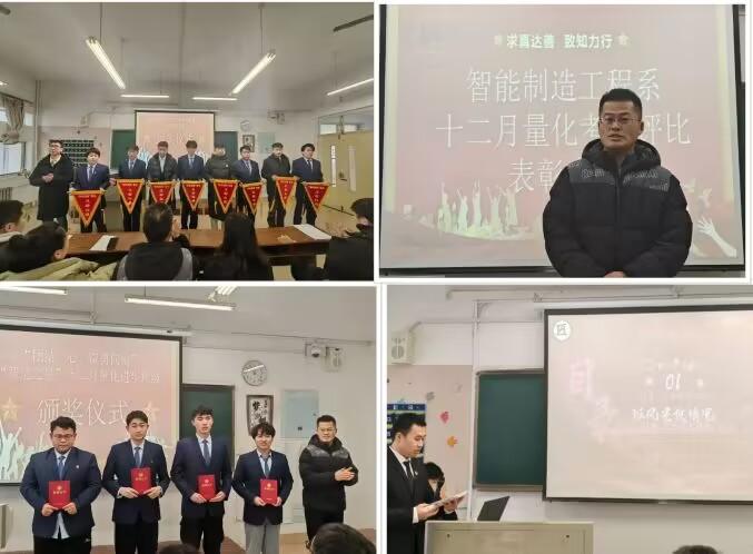 王佩为获得“智造之星”12月量化优胜班级荣誉的5个班级颁发奖杯、奖状并发表讲话。她对系部“智”字项目品牌及夯实“智造之星”评先树优系列活动,加强学生工作的基础管理表示充分肯定,系部在学风建设中的育人理念扎实,突出专业特色,彰显了智造学子的风采。她希望各位同学以量化考核为契机,努力共建优秀宿舍和先进班级,净化班风学风,求真达善、致知力行。