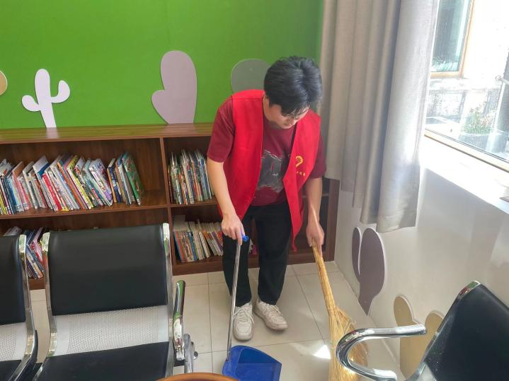 图为服务队队员打扫三涧溪社会实践志愿服务基地