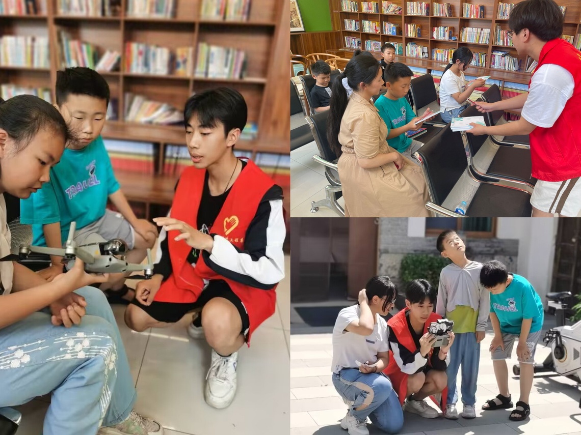 519日,山东电子职业技术学院“智飞未来”服务队来到三涧溪村,开展了无人机专题的社会实践活动。活动中,他们三涧溪村泉城书屋村里的儿童精心准备了无人机科普课堂。服务队成员通过生动有趣的讲解和现场演示,让孩子们深入了解了无人机的原理、功能和应用,与此同时还为儿童展示了无人机使用并进行答疑并发放了文具小礼物,激发了孩子们对科技的浓厚兴趣。