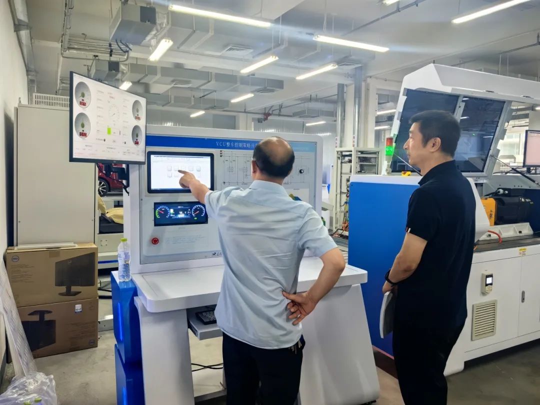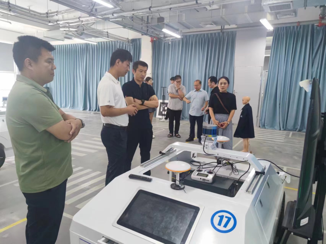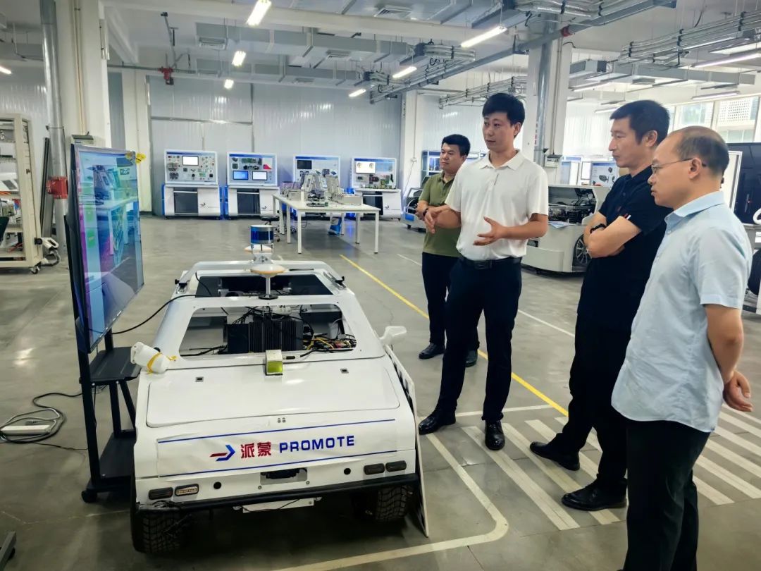 在公司总经理罗映的带领下,王新新一行三人首先参观了公司产品车间,罗映向大家详细介绍了多个公司具有自主知识产权的智能网联车辆核心零部件,包括自动驾驶高性能车载计算平台SmartPCU、线控底盘系统Stable Chassis、无人驾驶履带底盘等主要产品。随后双方进行了座谈交流,就技术服务、师资培养、课程资源、产教融合、学生实训、实习、就业等方面进行了深入探讨。大家一致认为,深化校企之间的合作关系,加强双方的交流与互动,对于实现教育资源与产业优势互补、共同促进人才培养和行业发展的双赢具有重要意义。