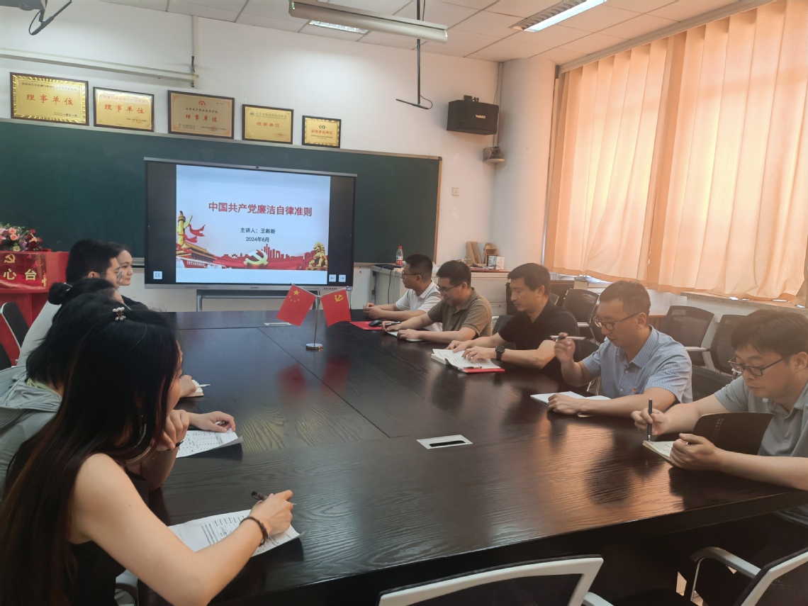 王新新从《中国共产党廉洁自律准则》的制定背景、重要意义、核心内容及实践要求四个方面进行了全面而深入的讲解。他强调,作为新时代的高校教育工作者和党员,必须时刻牢记党的宗旨,坚持高标准、严要求,将廉洁自律内化于心、外化于行,做到心有所畏、言有所戒、行有所止。在解读过程中,王新新结合学院的实际情况,通过具体案例剖析,深入浅出地阐述了廉洁自律对于个人成长、学科发展及学校声誉的重要性。他鼓励全体党员要树立正确的世界观、人生观、价值观,坚守师德师风底线,做到学为人师、行为世范,为培养德智体美劳全面发展的社会主义建设者和接班人贡献自己的力量。