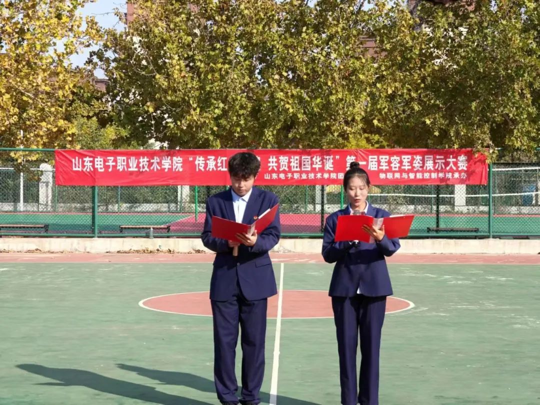 为弘扬爱国主义精神,增强学生的国防意识和集体荣誉感,10月24日,由校团委主办、物联网与智能控制学院承办的“传承红色军魂共贺祖国华诞”第一届军容军姿展示大赛在我校篮球场举办。