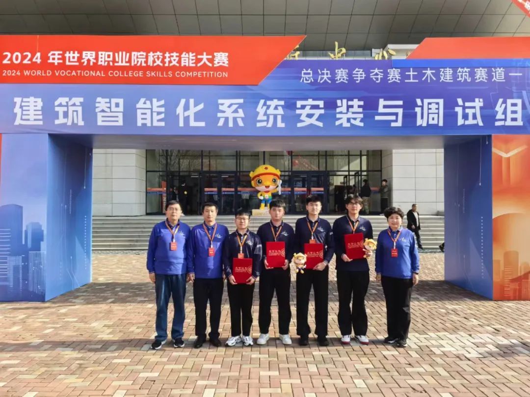 2024年10月29日至30日,世界职业院校技能大赛总决赛争夺赛(土木建筑赛道——建筑智能化系统安装与调试组)在黑龙江建筑职业学院展开激烈角逐。由我校物控学院刘文臣、王红老师指导,韩奎俊、刘星航、邱成款、赵召浩同学组成的团队斩获银奖。