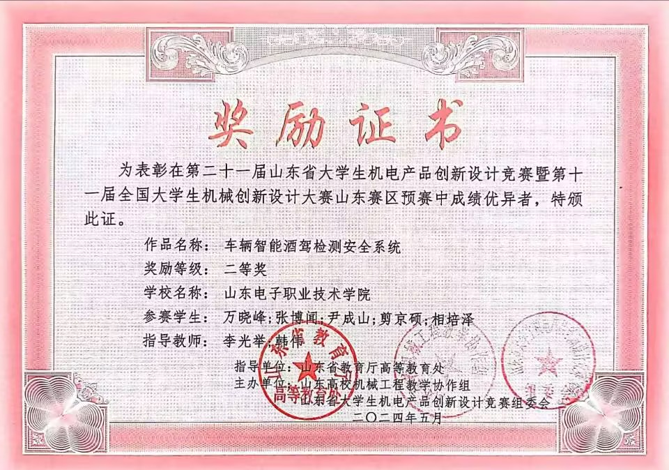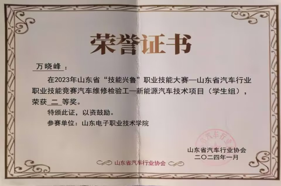 路虽远,行则将至;事虽难,做则必成。在校期间,他的学业成绩和综测成绩均位列汽车类专业第一名,并获评山东省高等学校优秀学生等荣誉。与此同时,他积极参加科创大赛,获得2024年“建行杯”山东省大学生创新大赛银奖、第二十一届山东省大学生机电产品创新设计竞赛省赛二等奖等省级荣誉。他在刚开学时报名了自考本科,目前全部科目均一次性通过。