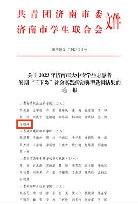 纸上得来终觉浅,绝知此事要躬行。在校期间,他积极参加社会实践与志愿服务活动,累计时长达到300h以上。在劳动实践上,他积极带动班级开展“教室卫生大扫除、公寓标准大提升、实验田播种大实践”活动,使得“体验劳动、热爱劳动”走进日常,成为平常。在社会实践上,他曾担任“智启青春”志愿服务队队长、西柏坡精神宣讲团团长,参与2023年暑期三下乡社会实践活动,并获评“2023年济南市‘三下乡’社会实践优秀学生”荣誉称号。通过这一次次的实践活动,他锻炼了自己的能力,增长了自身的见识,拓宽了自己的眼界。
