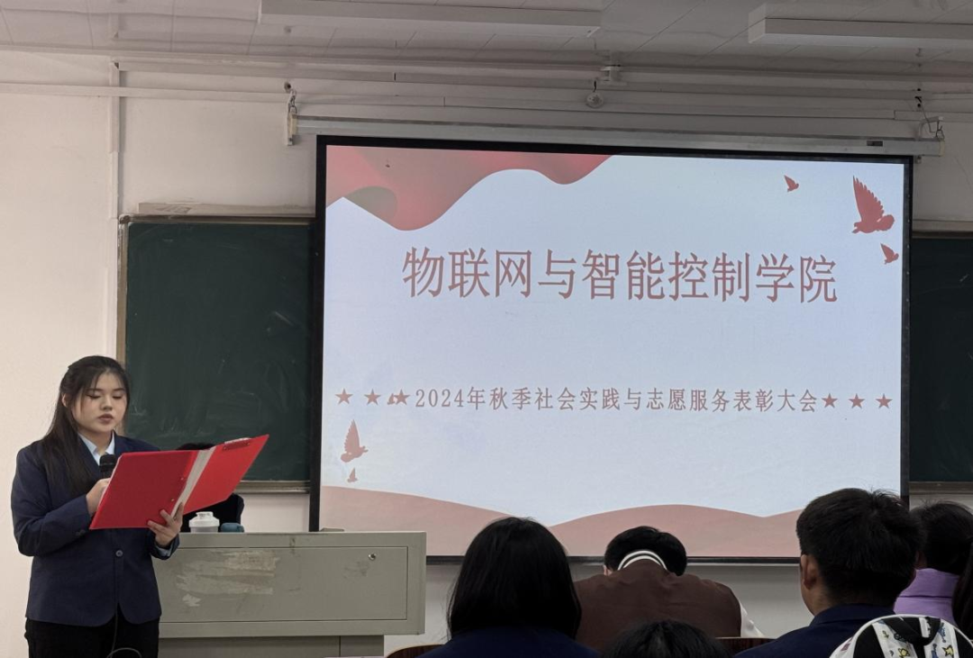 为表彰先进,激励广大团员青年在实践中增长才干、提升本领,在第39个“国际志愿者日”来临之际,物联网与智能控制学院举办了2024年秋季学期社会实践与志愿服务表彰大会,学院分管学生工作领导及全体辅导员、2024级各团支部团员干部参加此次活动。