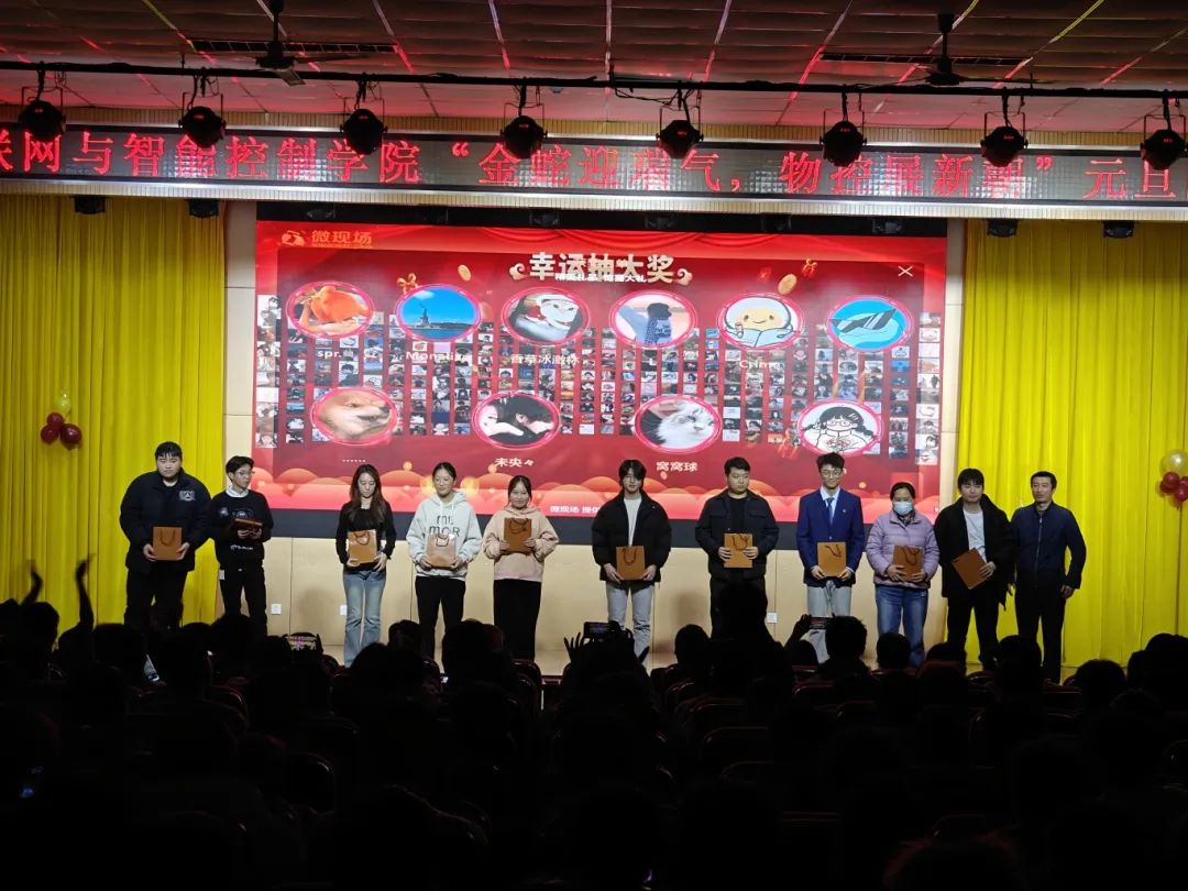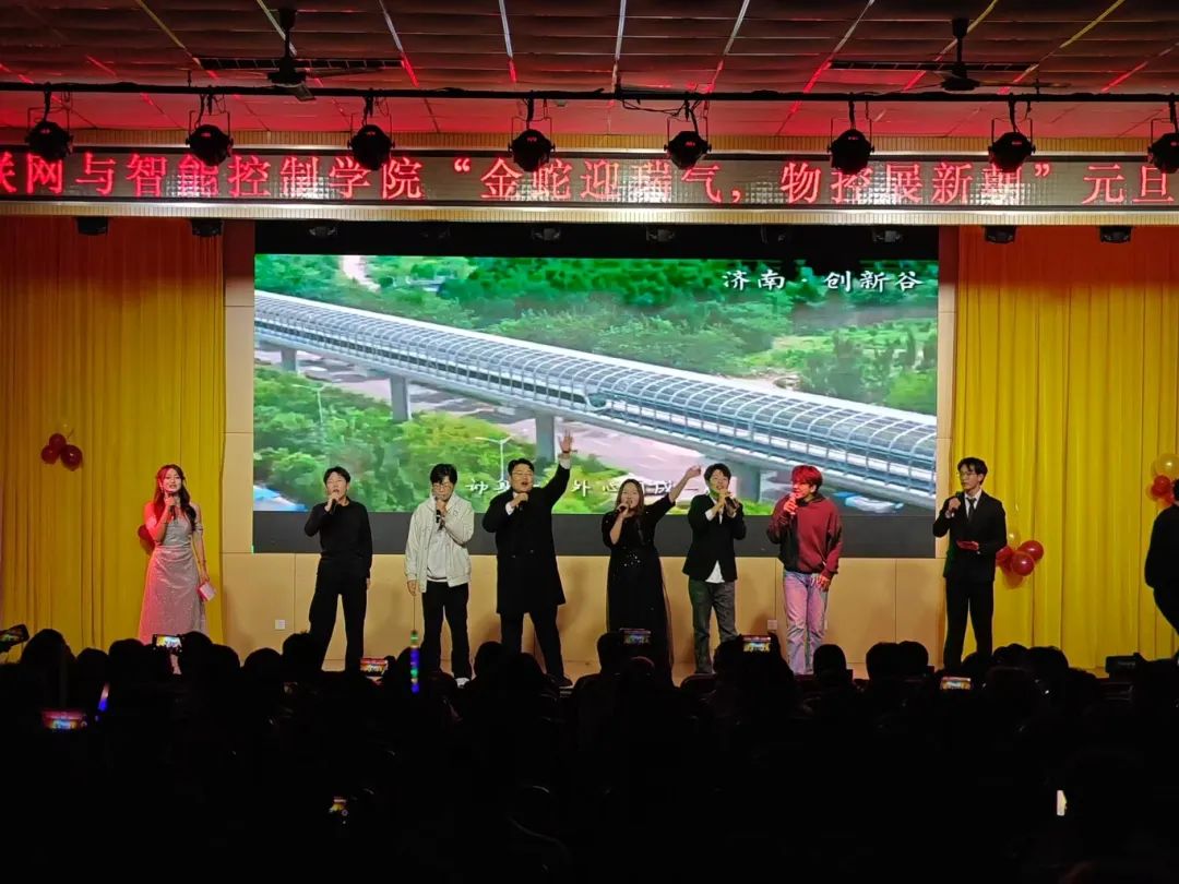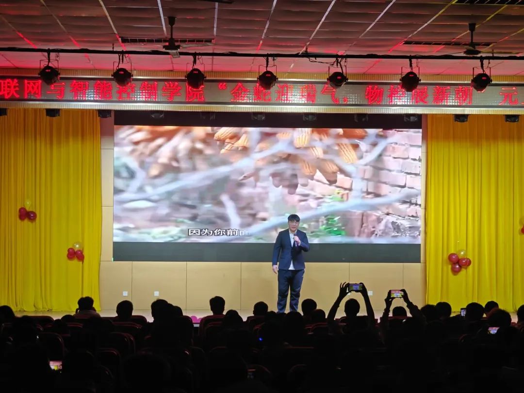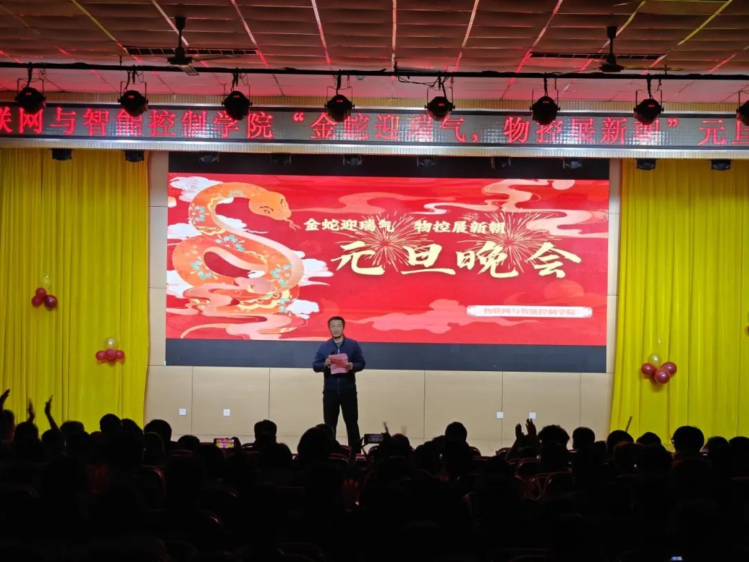 祥龙贺岁去,灵蛇送福来。青春的画笔涂抹了一年的绚丽景象,2025年的钟声必将带来新一年的美好希望。挥别旧岁的璀璨烟火,怀揣着对新年的炽热期许,踏上这崭新的征程,迎接2025年的到来!12月30日晚物联网与智能控制学院在学院报告厅成功举办了一场以“金蛇迎瑞气,物控展新颜”为主题的师生元旦晚会。全院师生齐聚一堂,共同度过了一个充满欢乐与感动的夜晚。