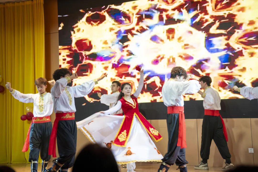 站在三寸讲台上教书育人的老师们,走下讲台也有活泼率真的一面,教师代表们带着他们的祝福,踏着节拍,带来舞蹈串烧《青春舞动》。