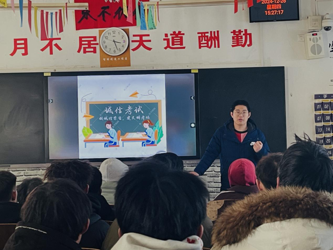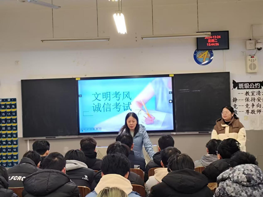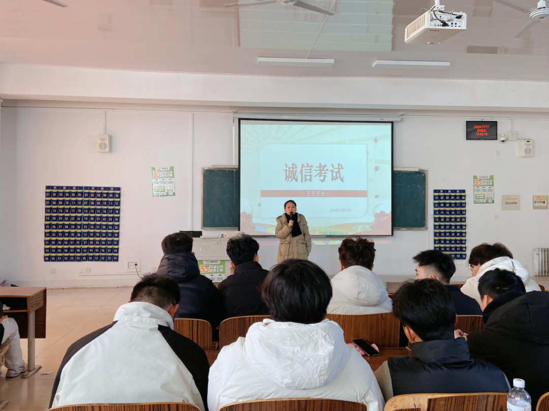 班会上,辅导员老师们通过规范解读、案例分析等多种形式,引导同学们端正考试态度,立志以诚信为本,坚决杜绝作弊行为。首先,辅导员老师们为同学们公布了本学期的考试日程安排,包括考试科目、考试时间、考试地点,提醒同学们带好学生证与身份证按时参加考试,规范作答;其次,辅导员老师们为大家介绍了《山东电子职业技术学院考场规则》和《考试纪律》,重点讲解了红黄牌警告的判定标准、处理程序及后果,强调了任何形式的作弊行为都将受到严厉惩罚,希望学生珍惜学业机会,远离作弊。最后,辅导员老师们为大家带来缓解考试焦虑、提高复习效率的方法,指导同学们正确看待和处理期末压力。同学们纷纷表示,他们切实地掌握了一些缓解焦虑的方法,在接下来的时间里将树牢诚信应考底线,励志笃行,全身心地投入到期末复习备考中去。