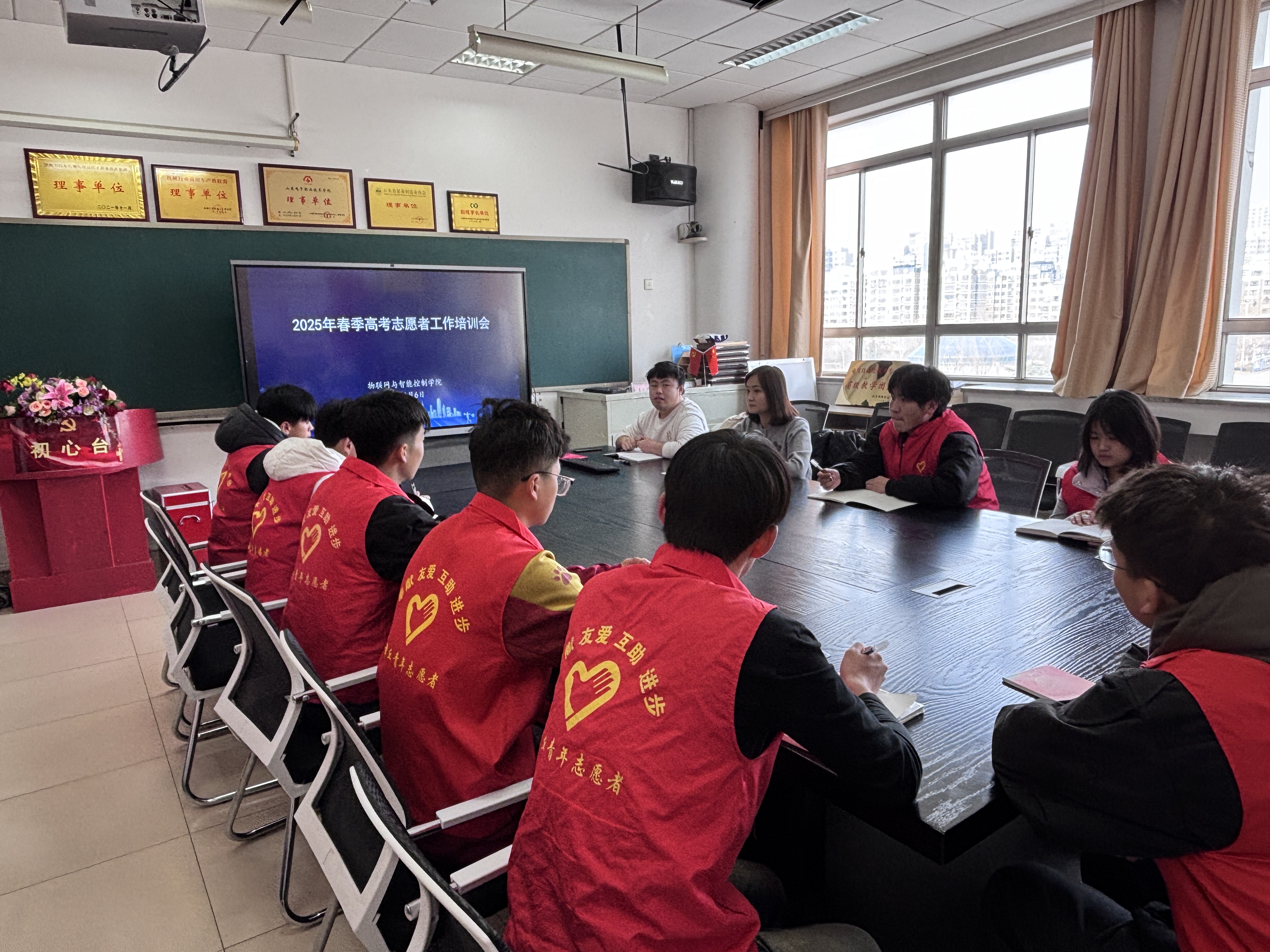 为保证春季高考志愿服务工作有序开展,加强物联网与智能控制学院学生志愿者队伍建设, 3 月 6 日,物联网与智能控制学院在综合楼201会议室开展了春季高考志愿服务工作培训会。团总支书记刘雅惠、共青团老师辛德平、二十余名春季高考志愿者参与此次培训会。