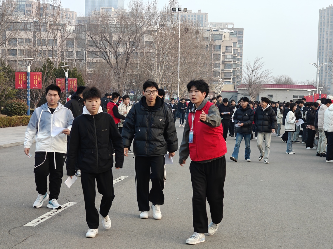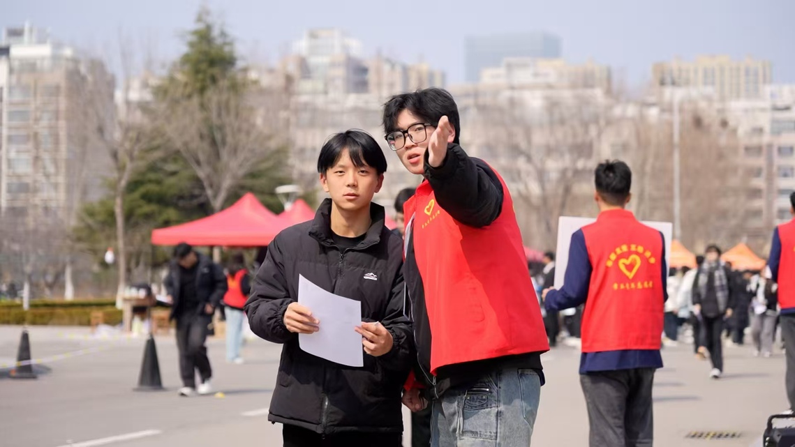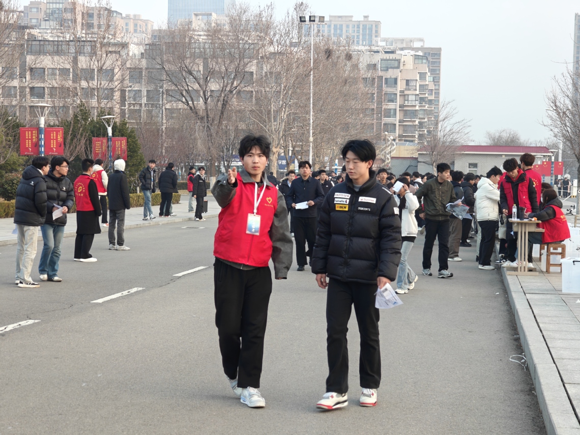 太阳才刚刚升起,志愿者们便抵达考点,迅速投入到准备工作中。在考生们陆续抵达并进入考场期间,志愿者们积极引导考生前往考场,为他们指明路线,并送上鼓励的话语,帮助他们缓解紧张情绪。考场内外,身着红马甲的志愿者已驻守考场,从物品寄存、安检引导到考场指引,他们以专业态度为考生筑起“爱心通道”。面对突发状况,志愿者们更展现出敏捷的应变能力——一名考生考试完毕丢失身份证,志愿者迅速陪同并和物品寄存处联系从而找到丢失证件;考生对学校考场分布不熟悉,志愿者第一时间发现,主动上前细心询问并给予讲解和引导