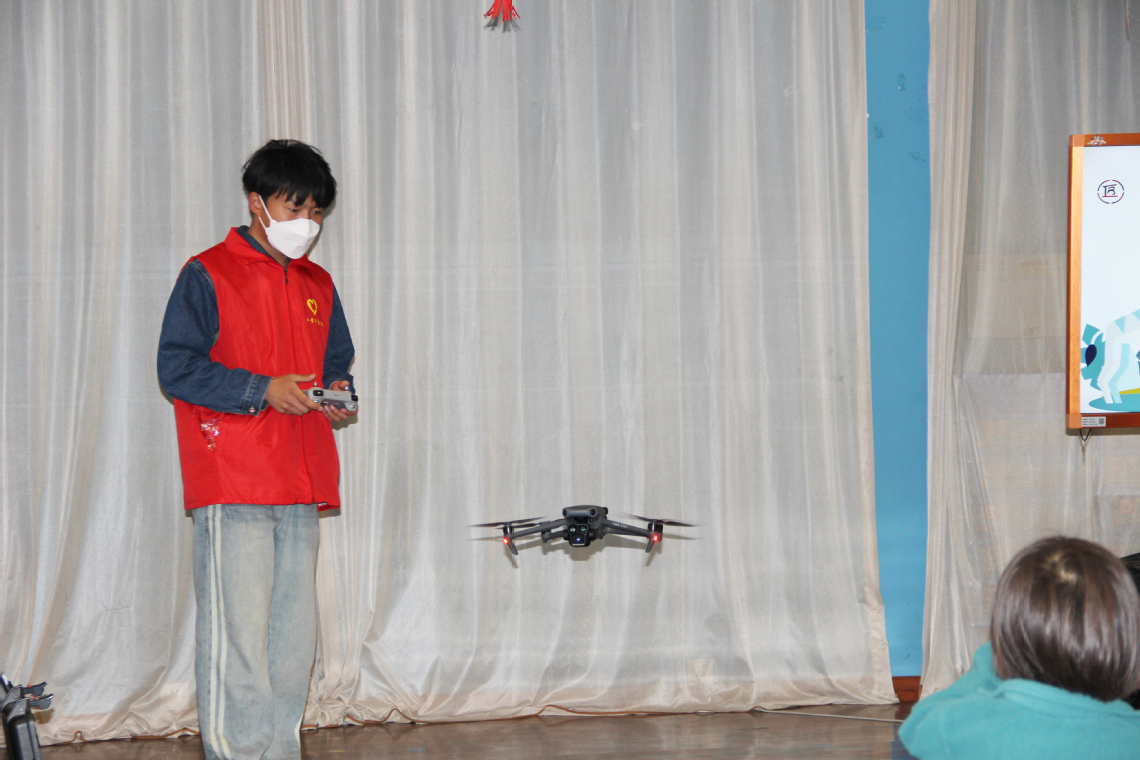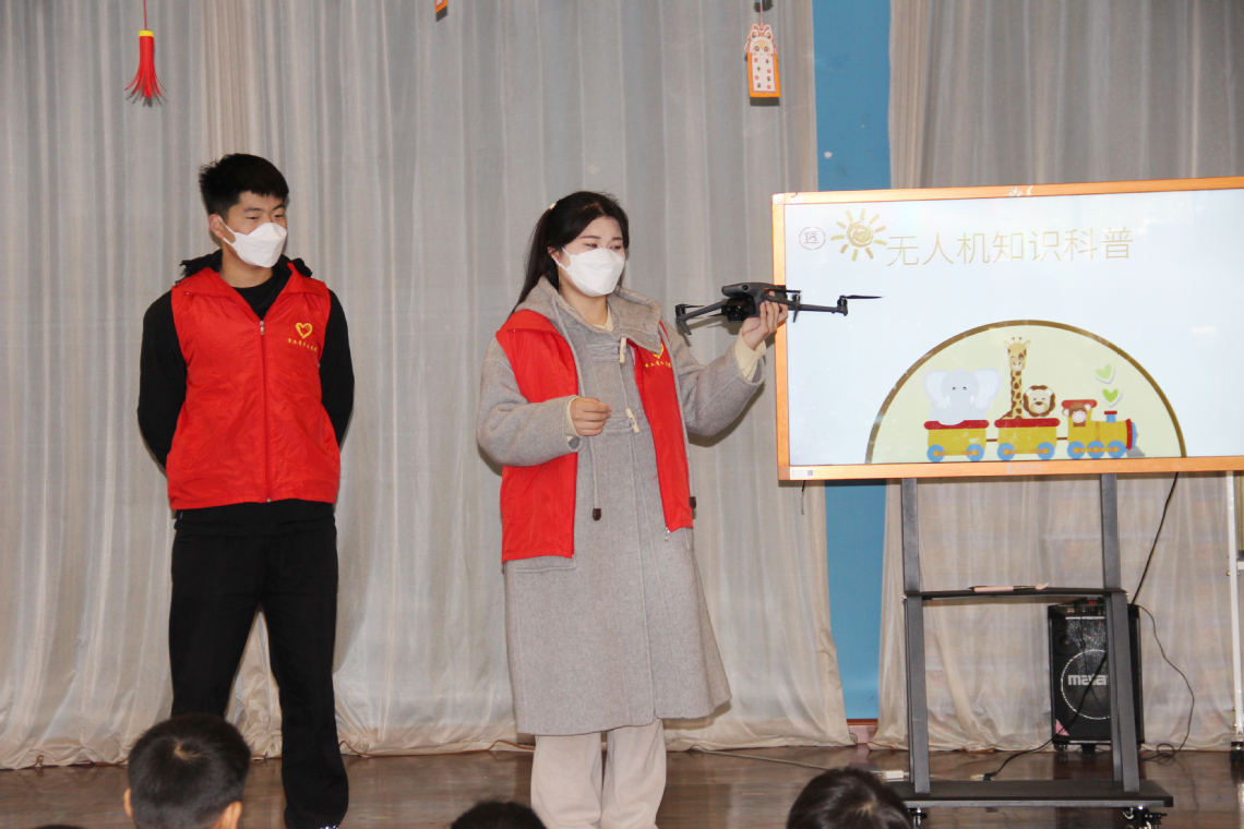 活动伊始,志愿者结合PPT深入浅出地向孩子们介绍无人机的起源、发展历程、工作原理和广泛应用的领域,孩子们认真听讲,不时提出各种疑问,志愿者们热情解答。而后,进入无人机飞行展示环节,当无人机缓缓升起,孩子们兴奋之情溢于言表,欢呼声与惊叹声交织不断,将现场气氛推向高潮。