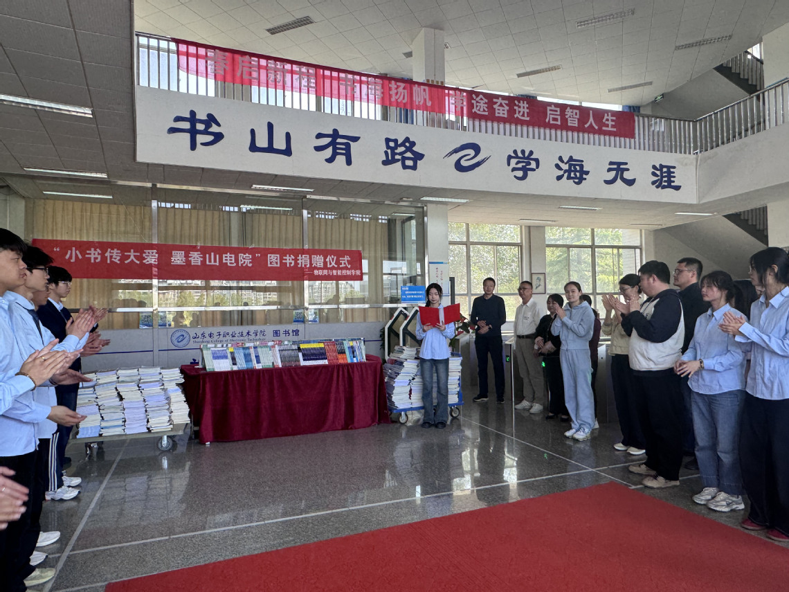2025年 4月 15日,物联网与智能控制学院举办 “小书传大爱,墨香山电院” 图书捐赠仪式,在学校图书馆大厅隆重举行。图书馆馆长李厥富、副馆长张蕾,物联网与智能控制学院党总支副书记王晓天及相关师生代表参加。