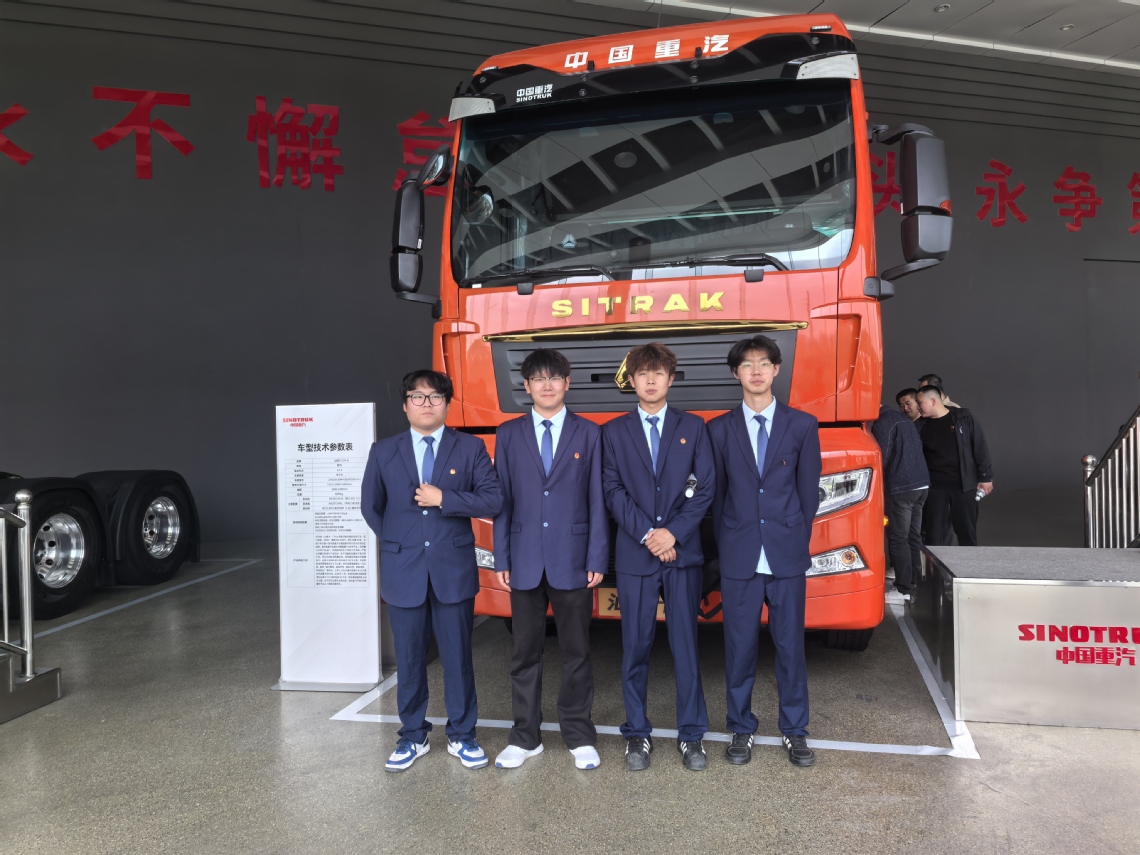 第一站,同学们来到中国重汽集团济南分公司。中国重型汽车集团有限公司领导带领同学们参观了内板总成车间、后桥车间、焊接车间、数控冲压车间、汕德卡系列重型卡车展示厅及拥有国内一流水平、自主产权的燃气机、柴油发动机等。生产车间的高度自动化、智能化生产工艺给师生们留下深刻印象。工作人员详细介绍了每款车型的性能参数、应用场景及技术优势。