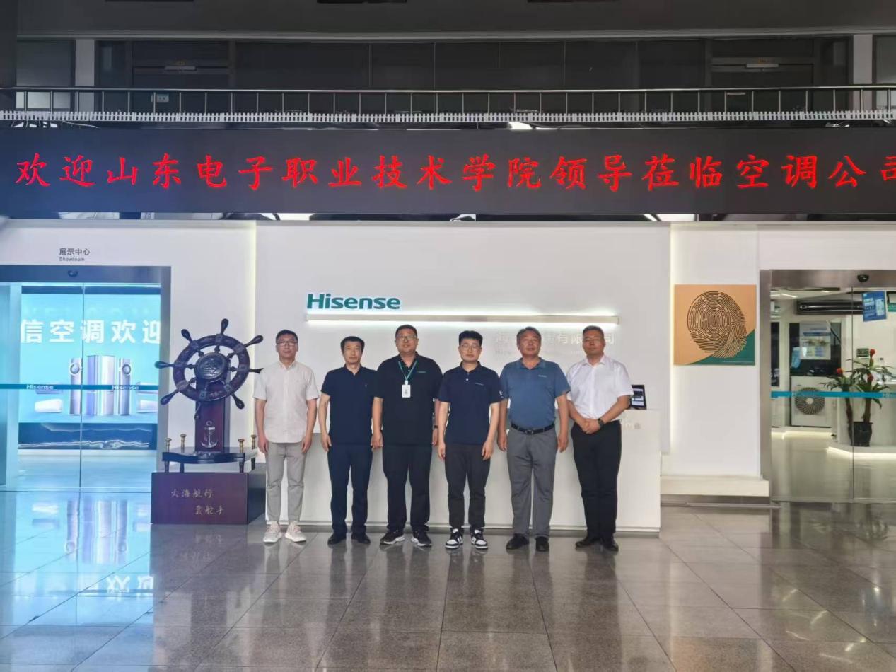 随后,考察团队来到海信家电产业园,了解海信空调的生产流程、工作环境和劳动保障等情况。通过现场调研,对海信家电的生产制造、技改方向与企业文化有了更为深刻的认识。王新新、刘学分别介绍了学校的基本情况、专业设置及人才培养模式。海信家电领导围绕海信的生产基地情况、信息化需求、校企合作成果等内容进行了详细介绍。双方在人才培养、实习就业、联合科研等多个领域均进行了深入交流,共同推动双方进一步开展产教融合与校企合作。