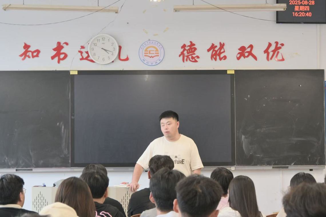 随后,辅导员辛德平结合学生工作经验,通过实例分享了帮助新生适应大学生活的方法。他提到,班助应主动与新生建立良好联系,关注他们的适应情况,及时提供支持与引导,成为新生大学生活中的知心朋友。