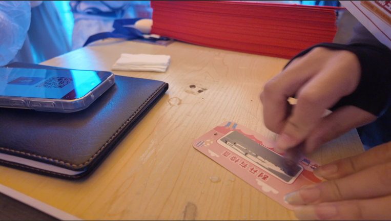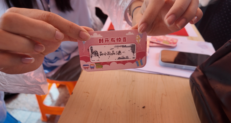 每一位办理完报到手续的新生都会获得一次抽取“迎新刮刮卡”的机会。同学们凭卡即可到指定摊位领取专属小礼品如笔记本、雨伞、护手霜等这份别具一格的“见面礼”,老师们现场辅助同学报到,线上扫码报道选取宿舍,不仅促进了师生交流,也让报到的第一天充满了期待与欢乐。