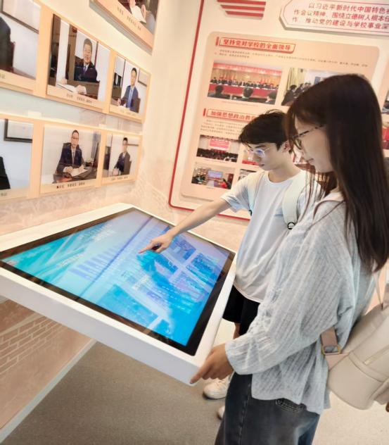 馆内陈列的珍贵老照片、荣誉证书以及早期教学设备等,生动展现了学校自创立以来的艰辛历程与辉煌成就。从学校的初创背景,到逐步发展为特色鲜明的职业院校,每一段故事都让同学们深刻感受到前辈们的拼搏精神与教育情怀。“未来展望” 区则通过全息投影技术,动态展示学校在电子信息领域的科研成果,与周围陈列的荣誉证书、技能大赛奖杯交相辉映,直观呈现学校的专业实力。