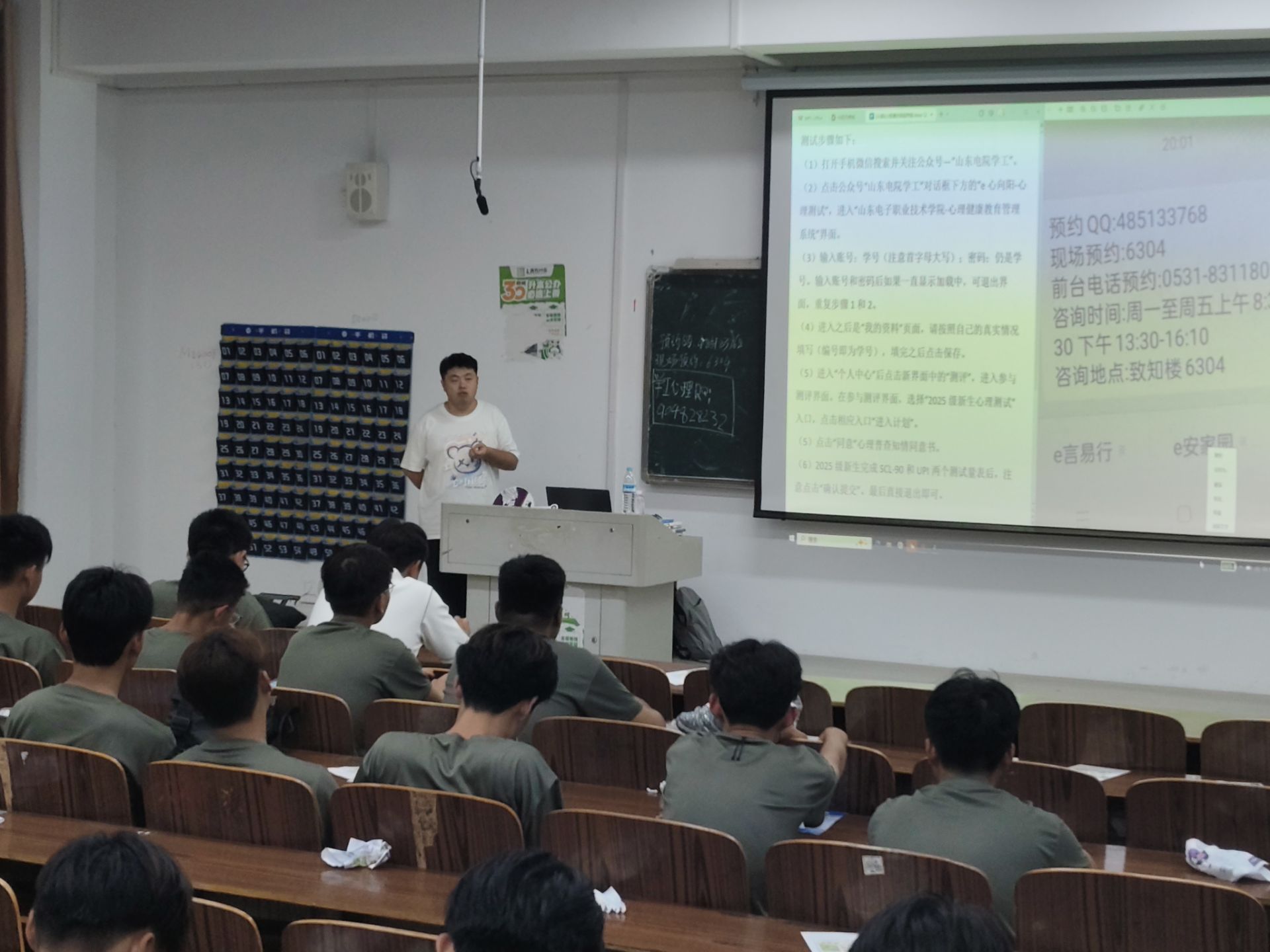 考虑到新生初入校园易面临环境陌生、学业节奏变化等适应难题,本次教育活动围绕“解决实际需求”展开。活动伊始,辛德平老师及心理部成员逐班指导新生完成心理健康测评,通过科学数据精准掌握新生心理状态,为后续个性化心理帮扶打下基础。随后,针对新生普遍关心的“如何规划大学学业”“怎样快速建立人际交往圈”“遇到情绪波动该如何调节”等适应类问题,老师与心理部成员结合案例现场答疑,用贴近新生生活的讲解化解困惑。