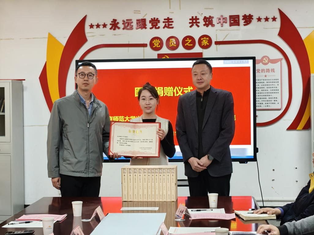 会上,李卫东对北京师范大学出版集团代表团的到来表示欢迎,并展望了双方合作的发展前景。庞海龙在交流中表达了对我校的支持。在双方代表见证下,李卫东与庞海龙共同签署战略合作协议,标志着双方在教材建设、资源共建、师资培训等领域的合作正式启动。北京师范大学出版集团随后向我校捐赠价值十万元码洋的精品图书,进一步丰富馆藏资源,助力学校教学科研工作。