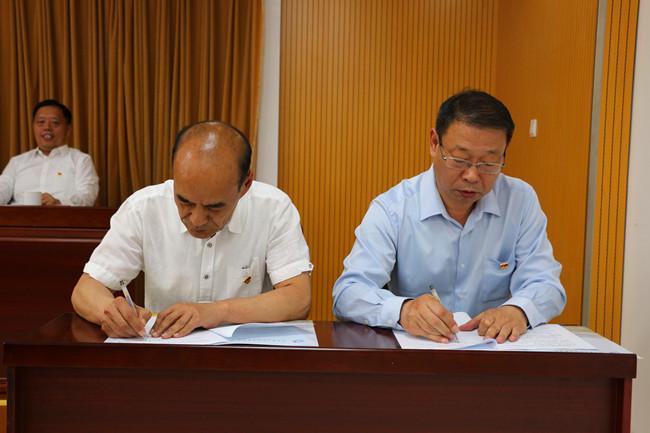 为深入推进新形势下全面从严治党工作向纵深发展,学校党委5月25日组织召开2021年全面从严治党暨党风廉政建设工作会议。会议听取了党委书记郑三同志关于全面从严治党的工作部署,听取了纪委书记柏一星同志的情况通报,签订2021年党风廉政建设责任书。在校的学校领导、全体副科级以上干部参加会议。会议由党委副书记、院长张训华同志主持。