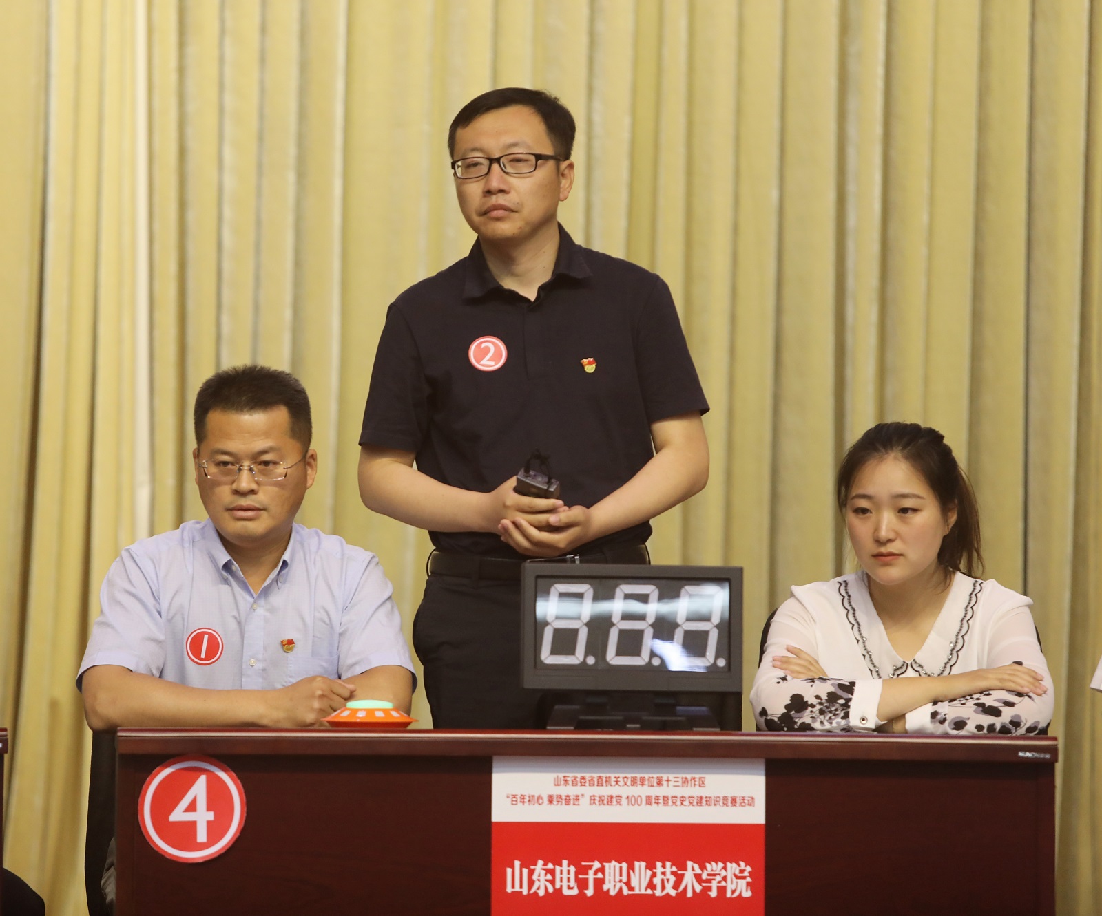 5月28日,省委省直机关文明单位第十三协作区举办的“百年初心·乘势奋进”庆祝建党100周年暨党史党建知识竞赛活动在山东送变电工程有限公司(秘书长单位)举行。我校派出3名选手参加竞赛,第十三协作区共13个单位同台竞技,现场比拼党史知识。
