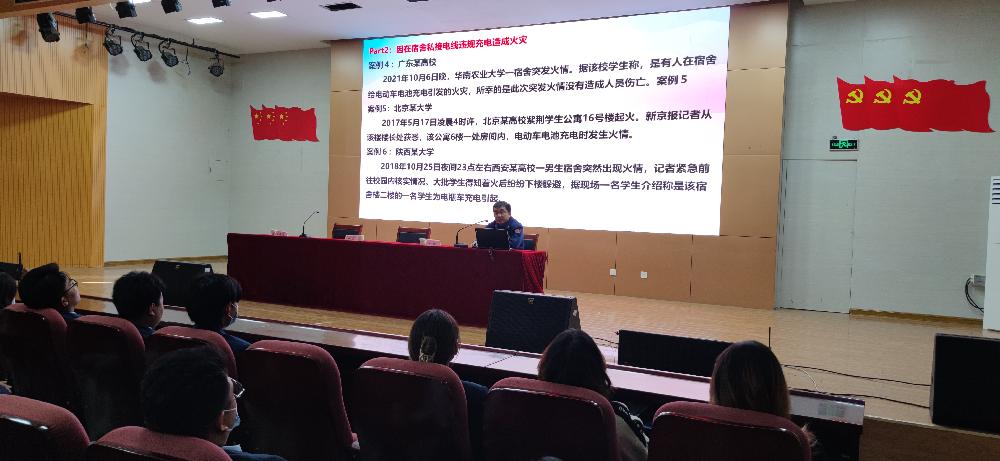 讲座中,田森结合近年来发生在高校的真实火灾案例,详细讲解了火灾的预防措施、火灾的扑救方法、消防设施器材的使用方法以及自救逃生技巧等知识。学生工作处副处长王佩作总结讲话,她强调学校高度重视安全工作,每周召开专题安全工作会,多措并举,为学生搭建健康、平安、文明、和谐的学习环境;要求全体同学自觉履行安全自律责任书承诺,提高安全防范能力,并将会议精神传达给身边的同学和家长,共筑师生校园安全防线。