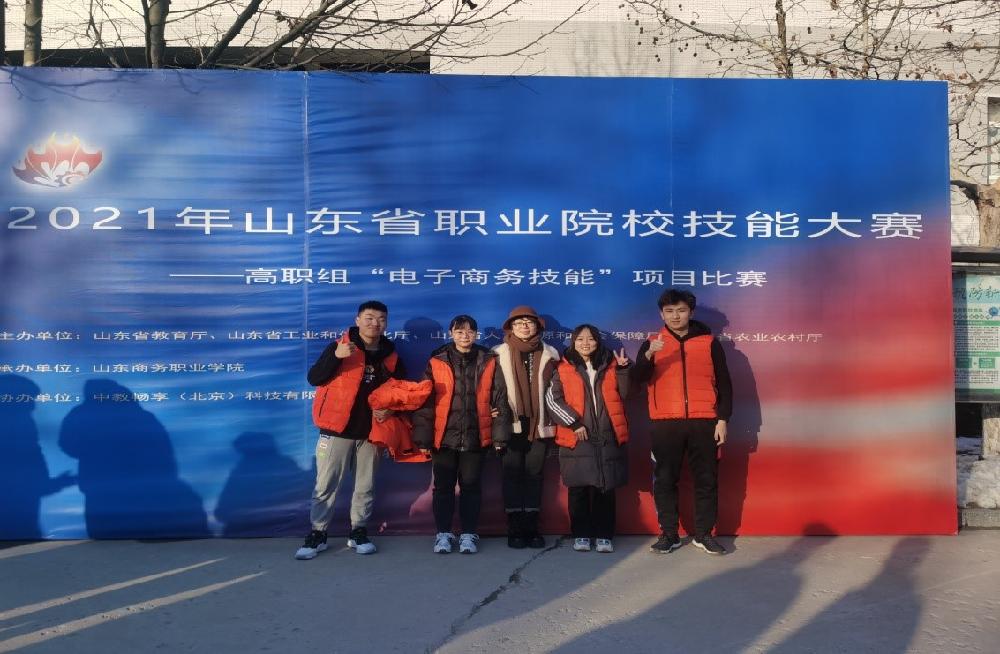 12月18日至12月19日,2021年山东省职业院校技能大赛高职组“电子商务技能”赛项在山东商务职业学院举行,全省有62支队伍参赛,由商务管理系教师李敏、魏湛冰指导,陈海源、周天乐、杨浩鑫、李雨彤四位同学组成的团队以第三名的成绩荣获一等奖。