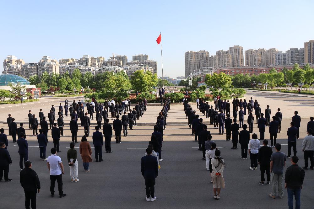为弘扬爱国主义精神,庆祝中国共产主义青年团成立100周年,5月4日,学校团委在综合楼广场组织开展“喜迎二十大、永远跟党走、奋进新征程”暨庆祝中国共产主义青年团成立100周年主题团日活动。学校党委书记郑三、院长张训华等学校领导班子成员、部门负责人、学工干部和学生代表参加本次活动。