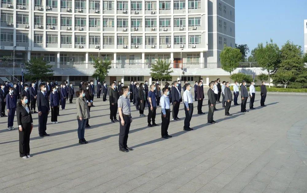 清晨,伴着激昂的国歌,升旗手有力地将国旗托起,在朝阳的映照下,冉冉升起的国旗格外绚丽。全校近200余名师生肃立在国旗台下,共同参与这次爱国教育的洗礼。一代人有一代人的长征,一百年见证共同的青春!