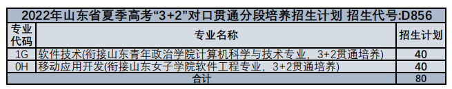 山东电子职业技术学院2022年山东省夏季高考“3+2“对口贯通分段培养招生计划