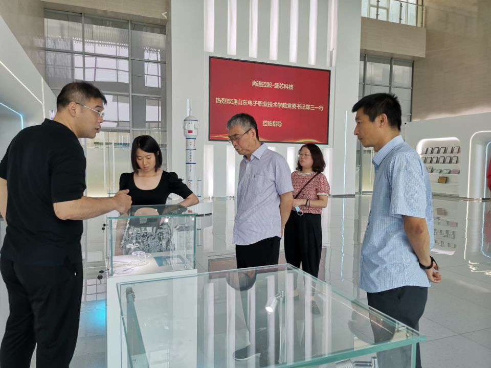 为进一步深化产教融合、校企合作,2022年6月28日,山东电子职业技术学院党委书记郑三与电子与通信工程系负责人、教研室主任等一行到山东盛芯电子科技有限公司走访。尚道控股有限公司董事长、山东盛芯电子有限公司总经理鲁汇智博士,盛芯电子有限公司首席科学家刘昭麟博士等热情接待。