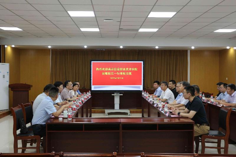 7月21日,南京信息职业技术学院校长田敏、副校长徐建俊一行8人到校交流调研。学校党委书记郑三主持会议并致欢迎辞。