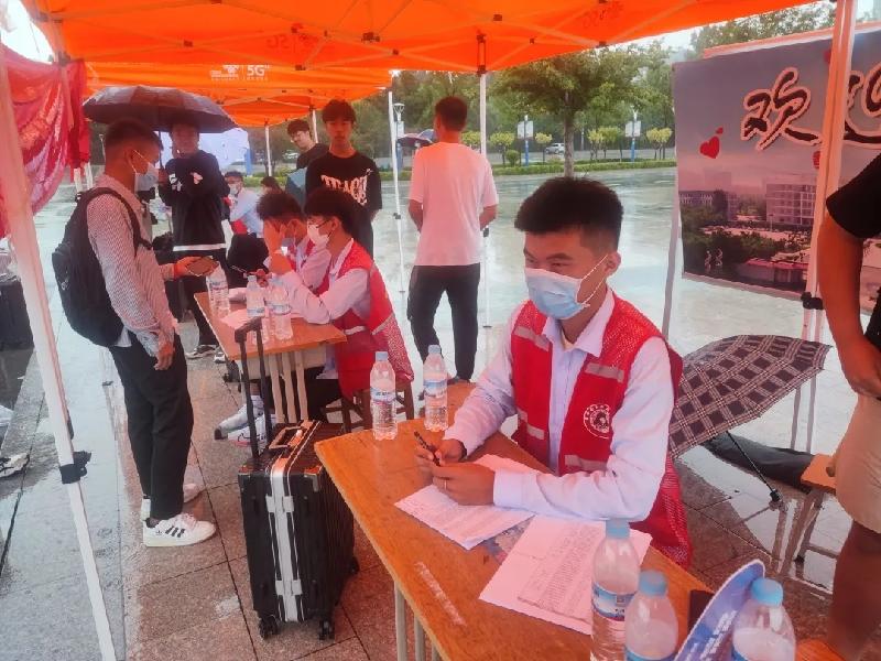 绵绵秋雨抵挡不住学生返校的步伐,志愿者们热情周到的服务如一股暖流温暖了整个校园。出示48小时内核酸检测阴性证明,查验健康码、行程码、测温入校,报到登记,入住公寓,一切都严谨有序,有条不紊。